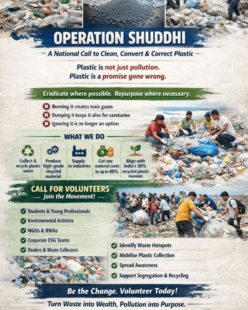 Operation Shuddhi is AVRO Recycling’s structured initiative to remove plastic waste from the wrong places and return it to the right system — responsibly, scientifically, and at scale.